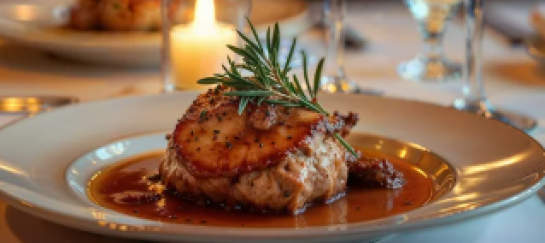 Hertenbiefstuk met rode port, creme van pastinaak & paddestoelen
